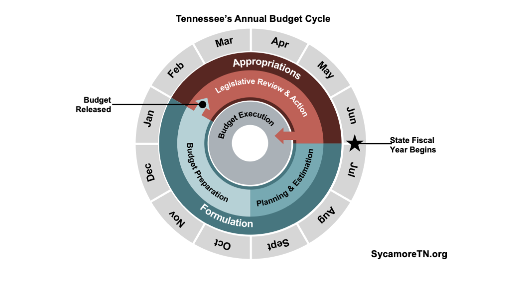 1. Tennessee’s budget process is more than tradition—it’s the law. Tennessee’s constitution requires the legislature to approve (i.e., appropriate) all public spending. Constitutional amendments added in the 1970s also require the budget to balance. This means in any given fiscal year, state spending cannot exceed the state’s revenue collections and reserves. In other words, the state cannot spend more than it has on hand.